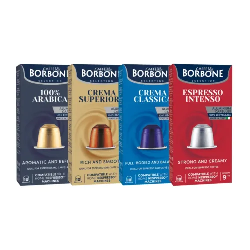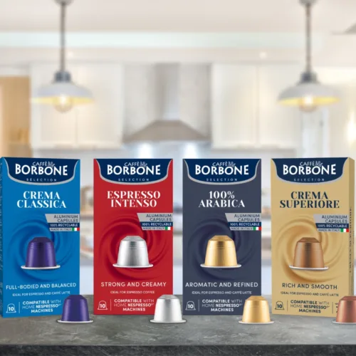 Thick, lasting crema with almond, walnut and caramel notes. Balanced blend, medium roast, full body.