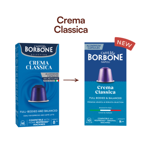 Crema Classica is a smooth and perfectly balanced blend with low acidity, full body, and notes of chocolate and dried fruit, ideal for both espresso and milk-based drinks.